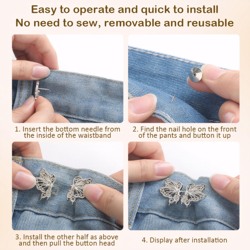 - Universal Clothing Compatibility: Works on jeans, trousers, denim skirts, and shorts. Doubles as decorative butterfly-shaped accents