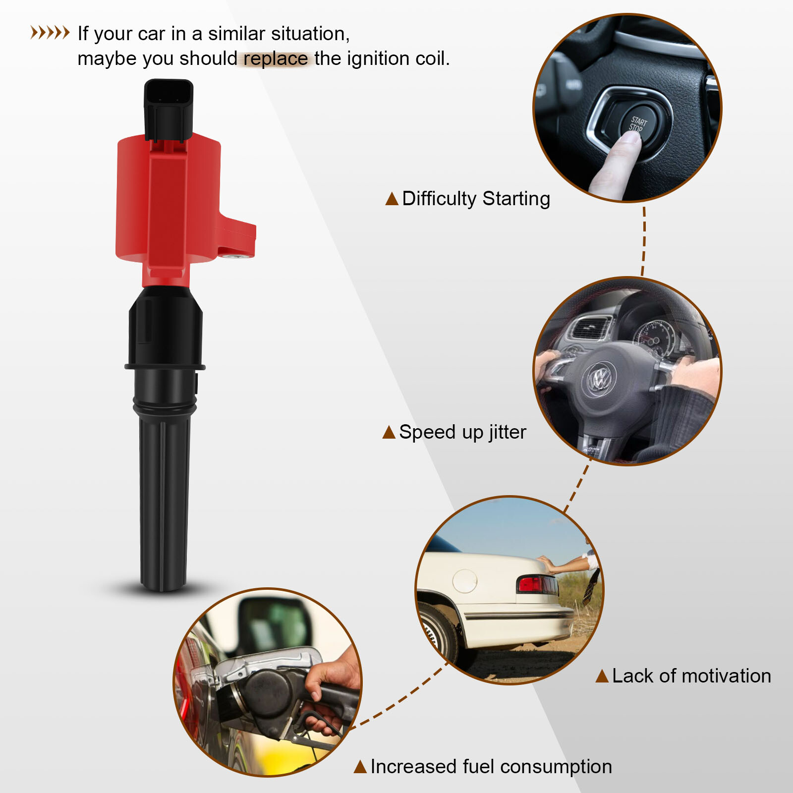Less Miles to the Gallon If your engine is not burning fuel properly, the engine will need more fuel to do the same amount of work, leading to decreased fuel efficiency. Additionally, when your ignition coil malfunctions, it can also create disparities in the oxygen sensor, sending the engine more fuel than is actually required. Be aware that putting this unspent fuel through your engine is also incredibly bad for the associated systems, and can cause damage to the catalytic convertor, which is often a very expensive part to replace.