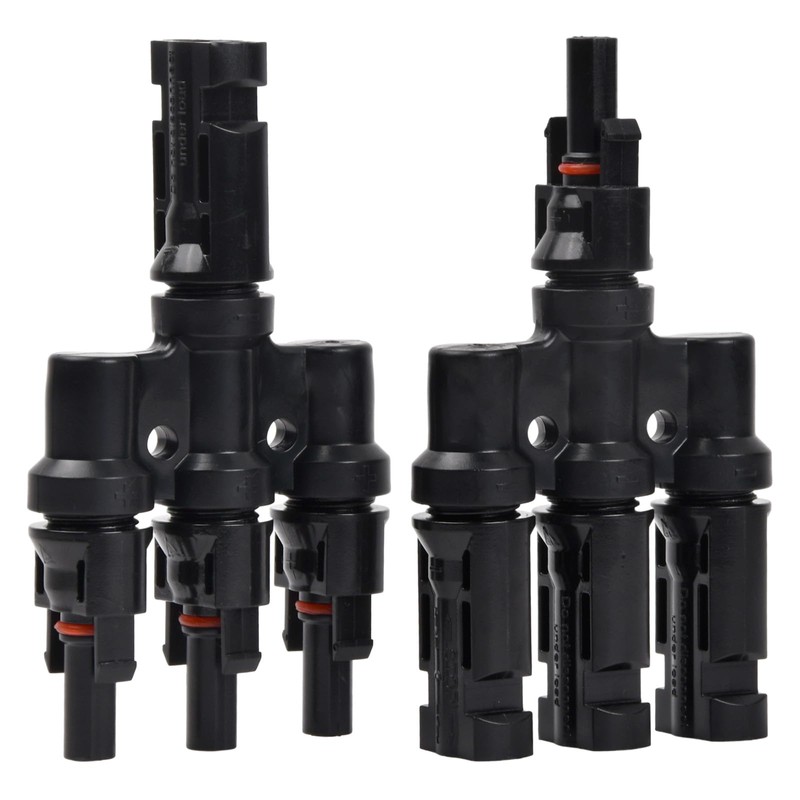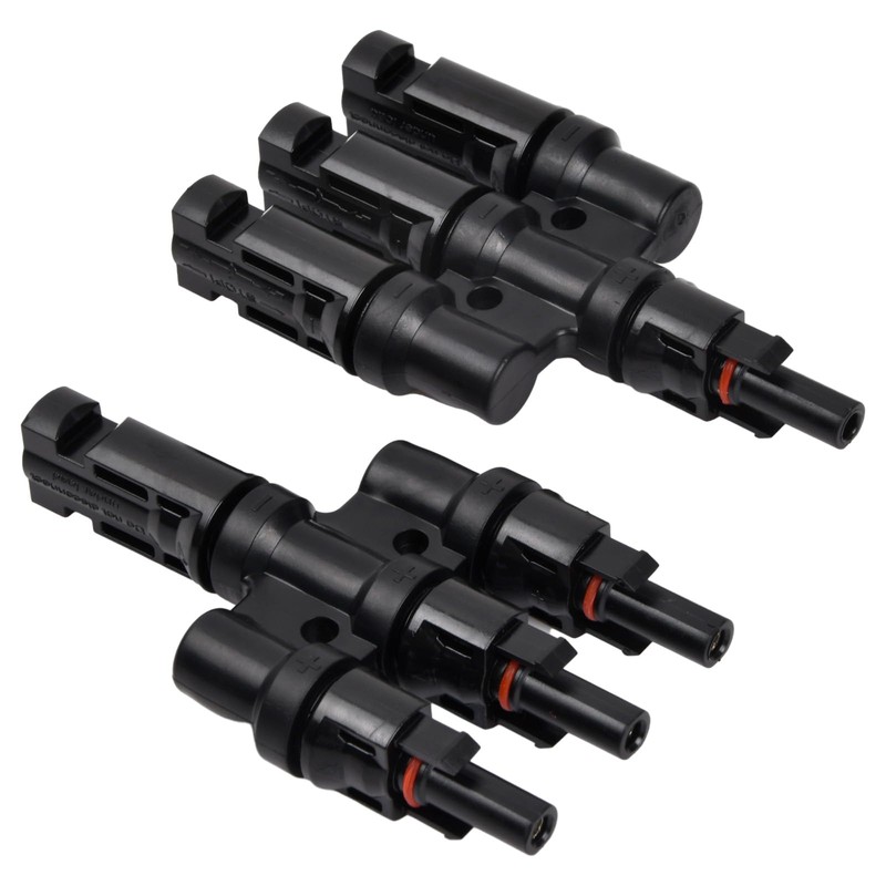 Kioiner 1 Pair Solar Panel Connectors, T Branch Solar Connector MFFF/FMMM, 3 to 1 Branch Photovoltaic Connectors, MC4 Solar Panel Cable Connectors for Parallel Connection Between Solar Panels