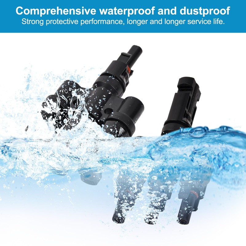 - Practical Design: Our solar panel connectors feature an advanced waterproof design, which sets it apart in durability and performance. The snap-lock mechanism ensures a secure fit, preventing accidental disengagement, while the high-tensile material offers remarkable flexibility, minimizing the risk of breakage. For enhanced protection, a robust red sealing ring provides an extra layer of defense, significantly improving the waterproof and dustproof capabilities.