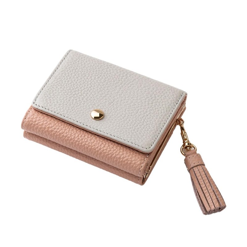 Kiotchiola Women's Mini Wallet, Trifold, Genuine Leather, Compact, Slim Wallet,, rose pink/grege