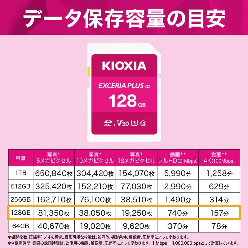 KIOXIA KLNPB128G Former Toshiba Memory SD Card, UHS-I U3, V30, Class 10, SDXC, 100 MB/s Readability