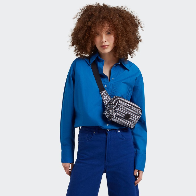 Kipling Women's Abanu Crossbody Bag, Lightweight, Adjustable Nylon Waist Pack with Multi-Compartment Zip Pockets, Blackish Tile, 7.5''L x 5''H x 3.25''D
