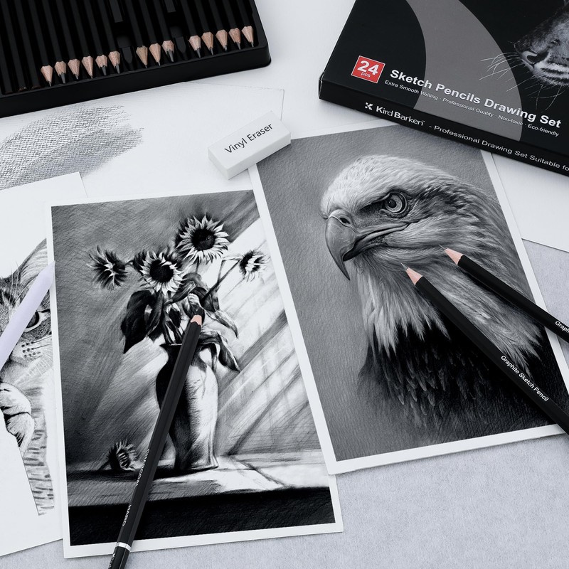 Kird Barken 24PCS Professional Sketch Pencil Set – 5H to 14B Pencils, Charcoal Pencils, Art Supplies Kit with Erasers, Sharpener, Knife – Ideal Gift for Artists, Students, Kids, Beginners