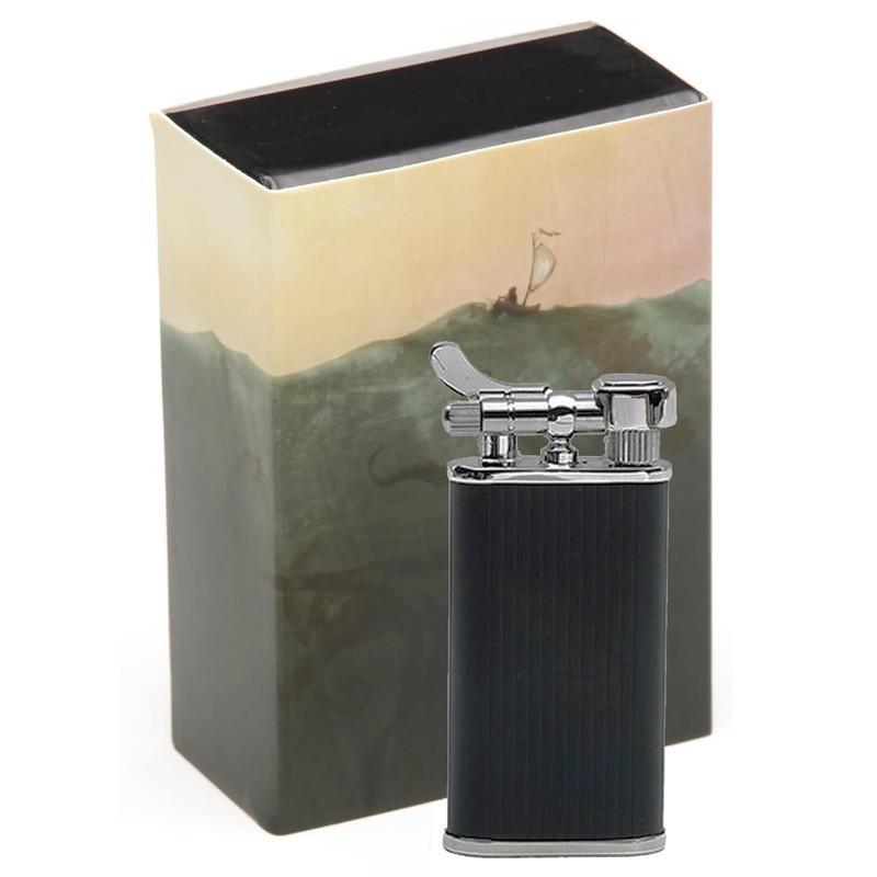 Kiribi Kabuto Japanese Pipe Lighter - Soft Angled Flame, Adjustable, Uses Flint & Butane, Flip Top, Travel Friendly (Mizo Black Matte)