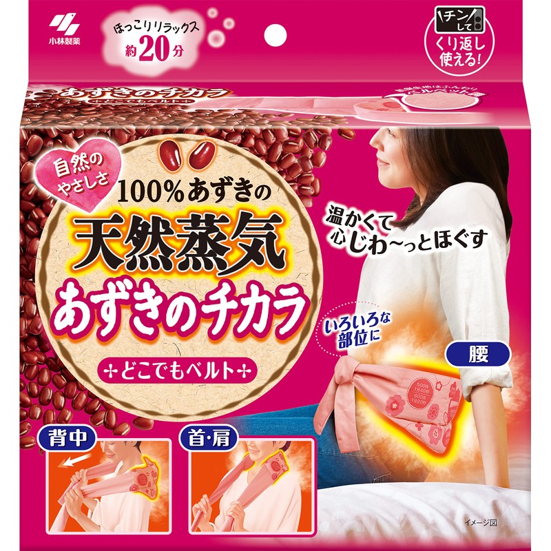 Kirigai Chemical Azuki no Chikara Anywhere Belt, 100% Natural Vapor Warms Various Areas, 1 Piece, Approx. 250 Times