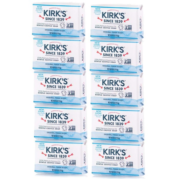 Kirk's Original Coco Castile Bar Soap Original Fresh Scent 4 Ounces (Pack of 10)