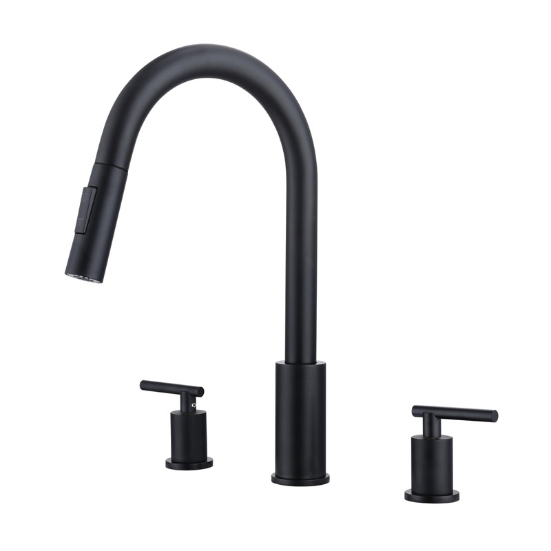 KIRLYSTONE Black Kitchen Sink Faucet, 3-Hole Kitchen Faucet with Pull-Down Sprayer Matte Black,Widespread 2-Handle Kitchen Faucet with Sprayer