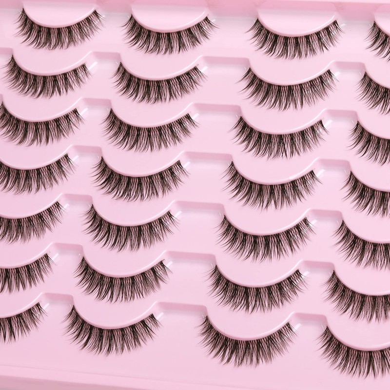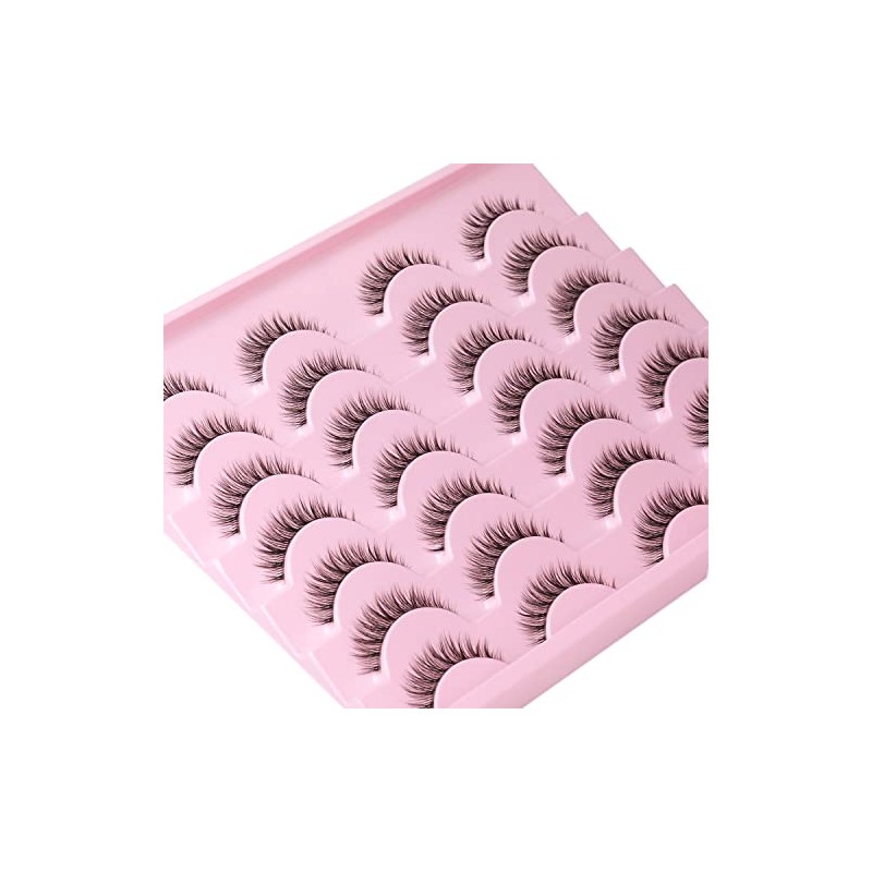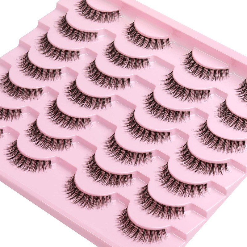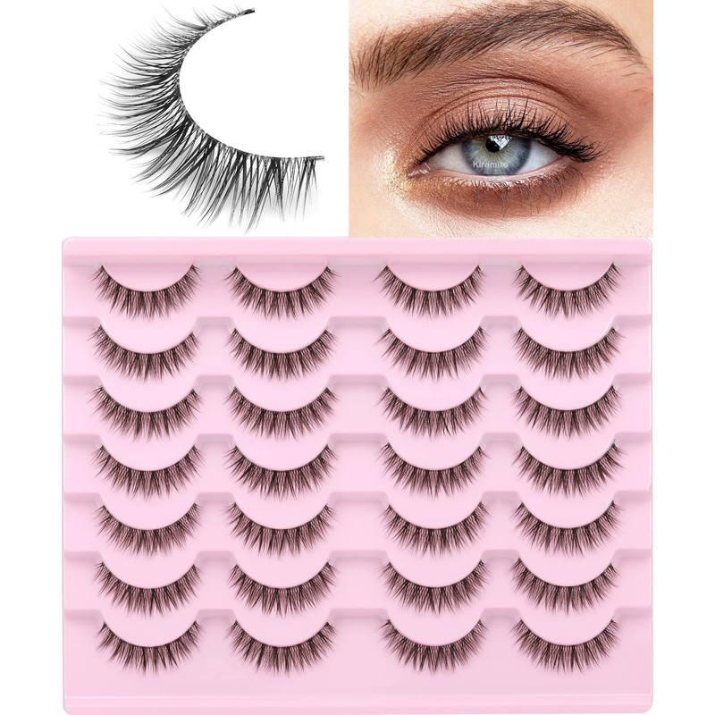 Kiromiro Eyelashes Wispy 10mm False Lashes Natural Look Fluffy 3D Mink Lashes Short Strip Lashes Pack
