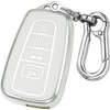 Kirsnda key fob cover metal buckle Compatible with toyota Camry RAV4 Highlander Avalon C-HR Prius Corolla ect Smart Remote Key skin,TPU Protection Key Case 4 buttons (silver white)