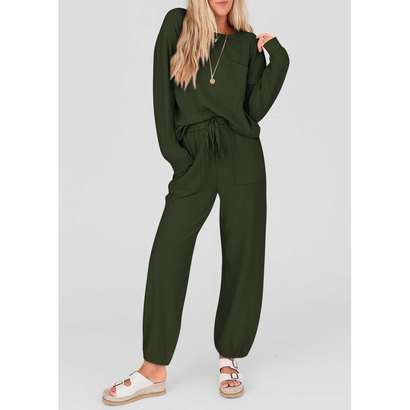 - Features: Two Piece Outfits For Women/ Womens Lounge Set/ Going Home Outfit for Mom After Birth/ Crewneck Long Sleeve Ribbed Knit Sweat Suits for Womens 2 Piece/ Drawstring Elastic Waist Beam Foot Jogger Pants Matching Set/ 2 Piece Tracksuit Outfit/ Sweat Set for Women/ Pajamas For Women Set/ Lightweight Pit Ribbed Knit Fabric/ Two Side Pockets And a Chest Pocket, Solid Color, Womens Spring Fashion 2025/ Casual Outfits
