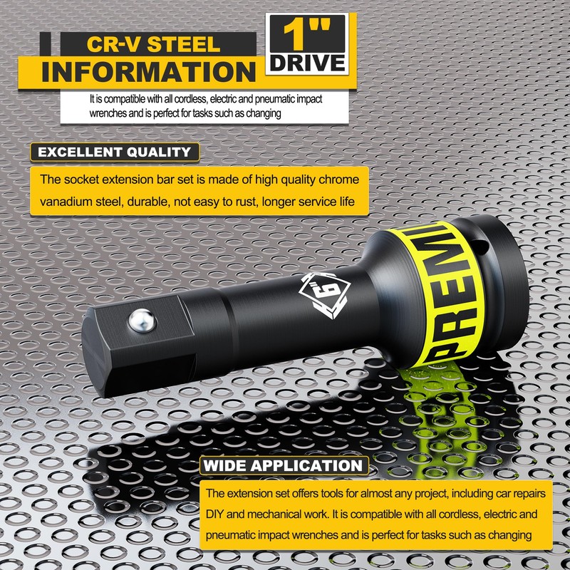 - Wide application: The extension set offers tools for almost any project, including car repairs, DIY and mechanical work. It is compatible with all cordless, electric and pneumatic impact wrenches and is perfect for tasks such as changing