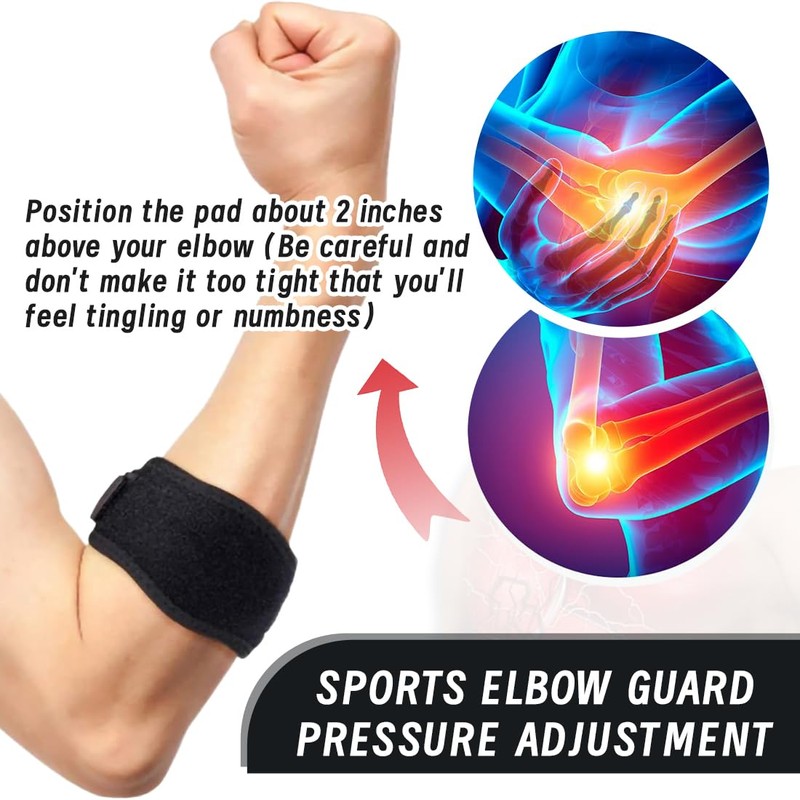 - Bequeme Passform: Das 18,5 cm lange Band ist verstellbar, die 7 cm x 6,5 cm große Polsterung passt sich den Konturen des Ellenbogens an, und das hautfreundliche Material sorgt für einen bequemen, nicht scheuernden Sitz.