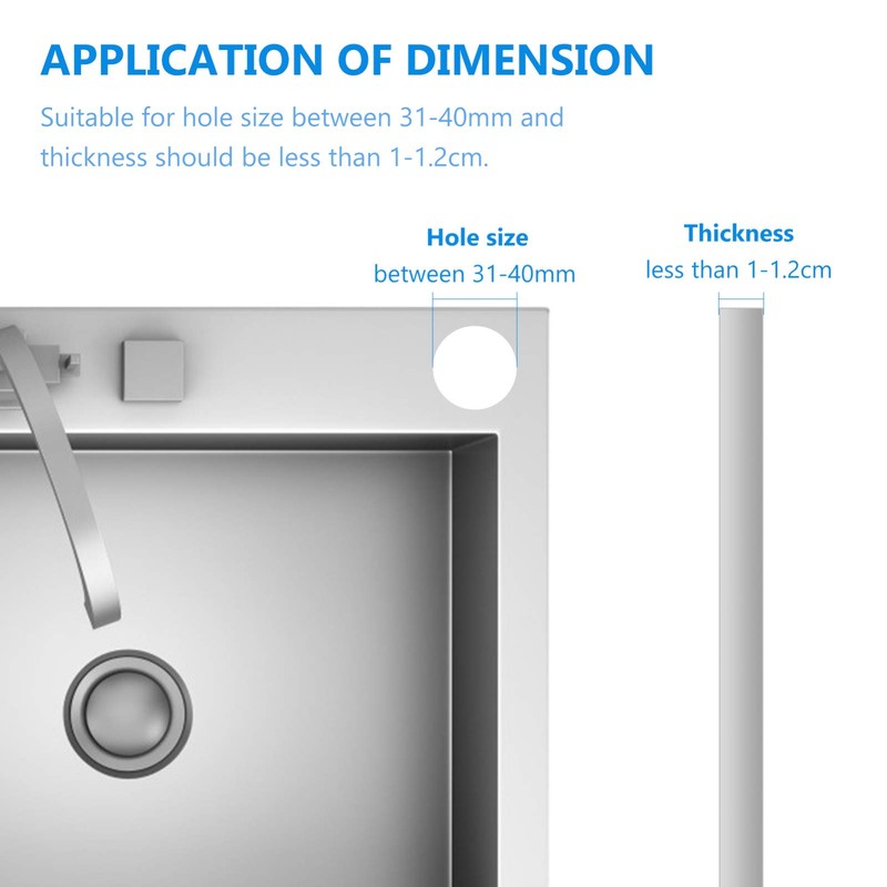 - Hole Cover for Sink Tap: Suitable for holes between 31- 40mm/ 1. 2- 1. 6 Inch, thickness should be less than 1- 1. 2cm, which is the standard size of faucet hole cover in most households.