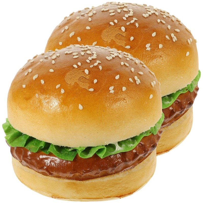 Kisangel 2pcs Realistic Simulation Burger Model Artificial Bread for Boys and Girls Kitchen Play and Photography Props