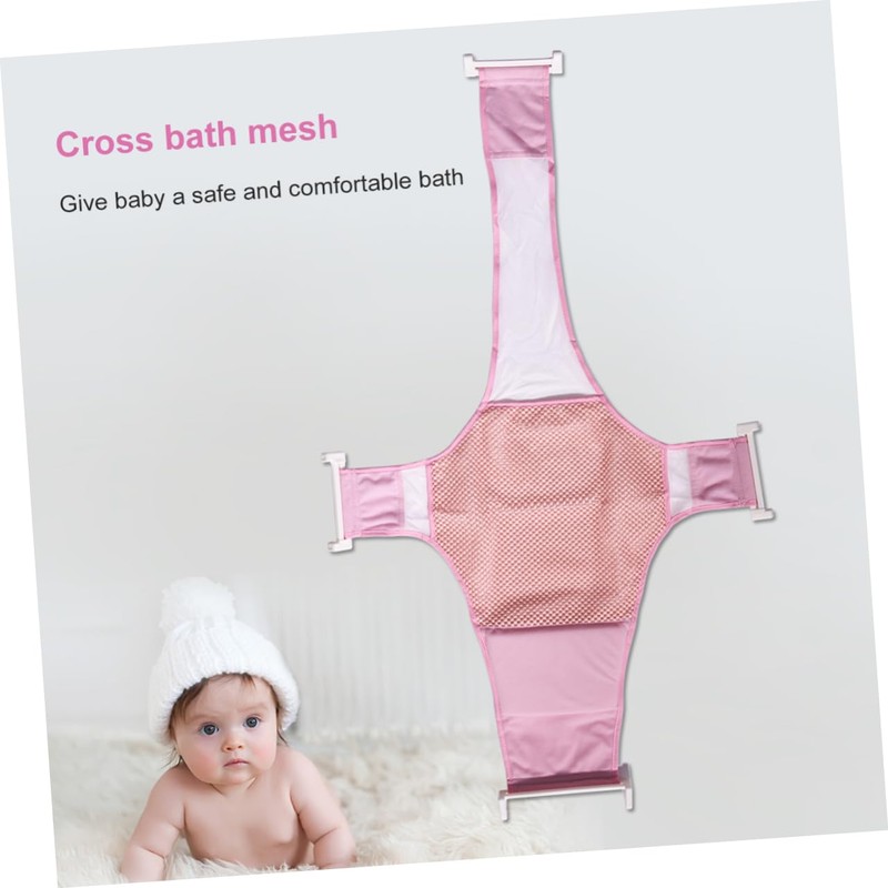 Bath Net This item includes mesh and pads, which is made of durable material that allows water or soap to drain through.Support Sling The sponge pillow will support and neck comfortably.Bathtub Seat Net Its anti-slip design make it safe and strong. Bath Mesh It features with clean, install and remove easily and conveniently.Tub This seat net can aid new parents and at bath time for hands-free bathing