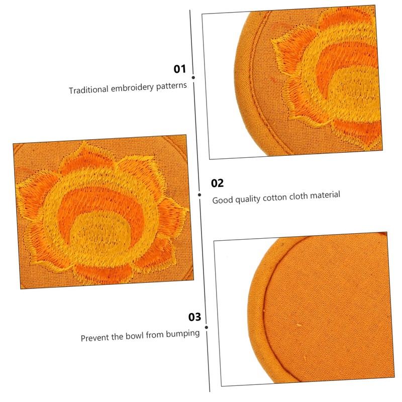 Kisangel Buddhist Bowl Pad Handmade Rounded Cushion for Sound Bowls Beautifully Embroidered Tea Pot Mat Durable Lightweight Religious Decor for and Meditation