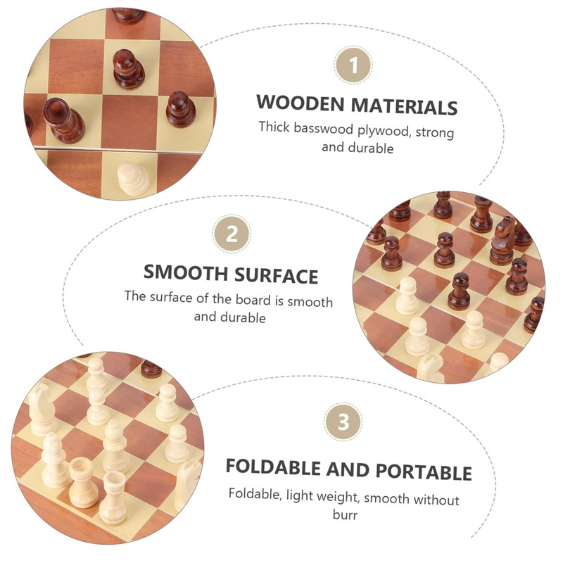 • Folding chess:made of wood with excellent workmanship, both the board and pieces feature smooth surface and durability,chess game