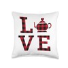 - LOVE Teapot Red Buffalo Check tea silhouette pattern Great for dorm room, college student, mom, grandma, aunt, living room, sofa, couch, bedroom, bed. Kismet Designs