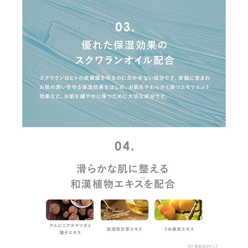 Luxuriously formulated with a blend of Japanese herbal extracts: Alpinia katsumadai seed extract, oil-soluble licorice extract, and plum fruit extract.