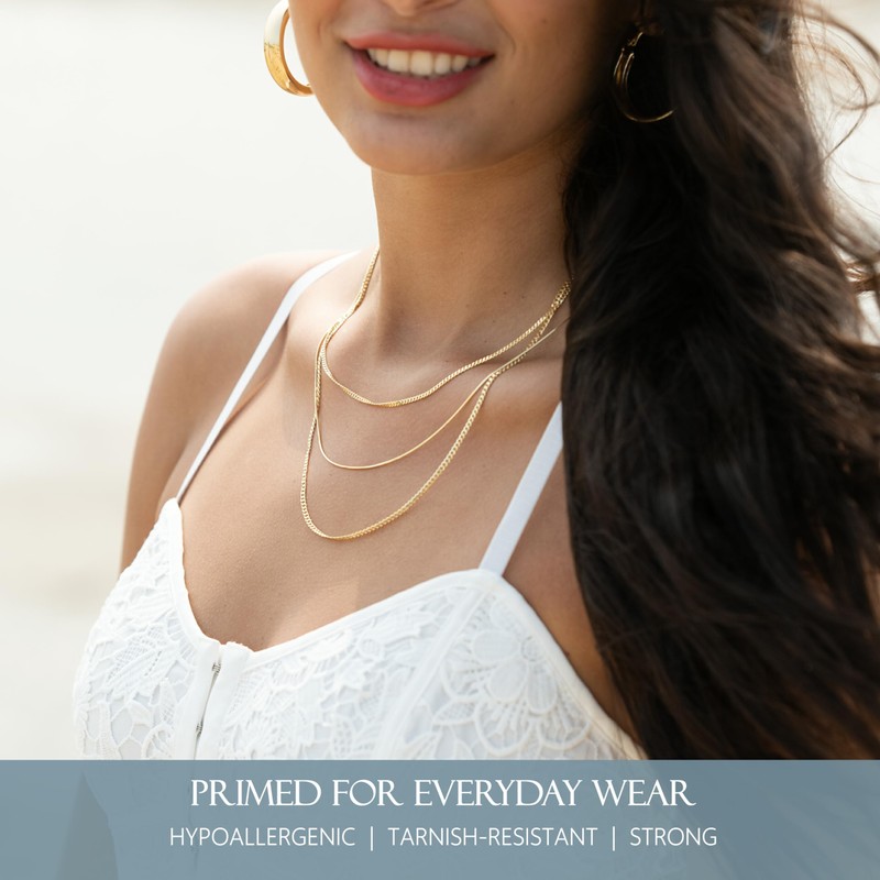 - Real 925 Sterling Silver Luxury - Crafted from 92.5% pure sterling silver, our chain is nickel-free and hypoallergenic - ideal for sensitive skin. Gold plated with a thick layer of 1 micron 18K yellow gold for added durability. Choose from various lengths, featuring a 3/50” wide (1.75mm) design with a secure lobster-claw clasp and spring mechanism.