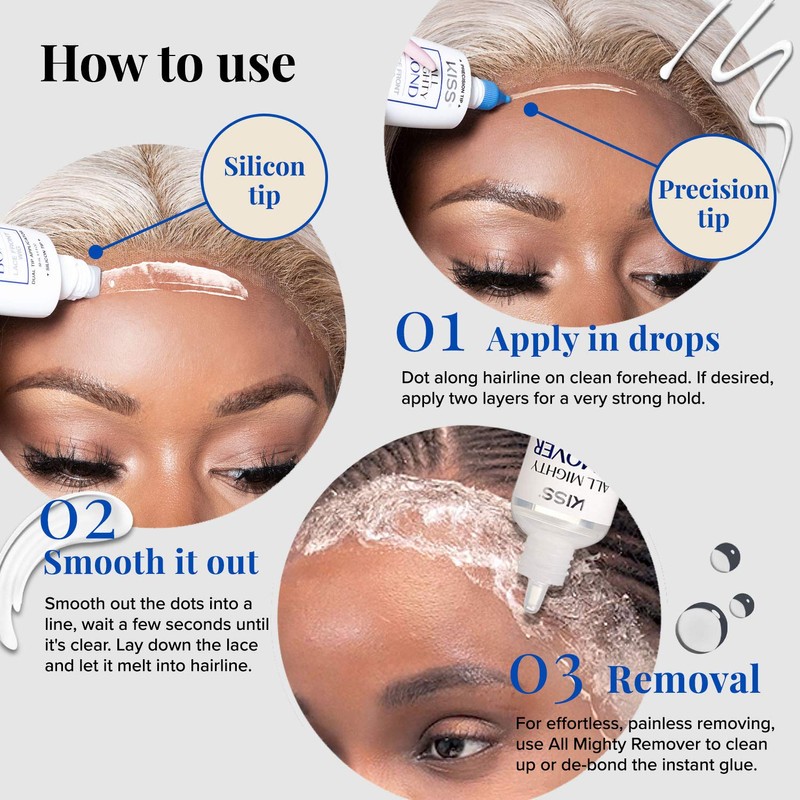 - 【Instant Drying for Swift Styling】 This bond sets in seconds, enabling a fast-track to a flawless look and eliminating the wait time typically associated with adhesive setting, perfect for those who need to be ready at a moment's notice.