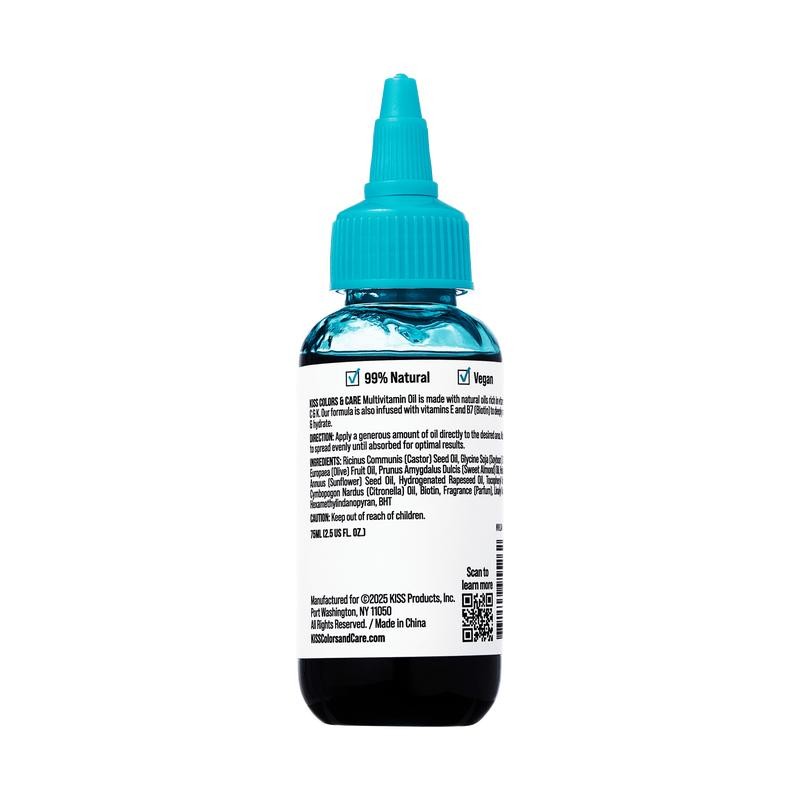 Nourish and rejuvenate your hair and skin with KISS Colors & Care Black Castor Multivitamin Oil. Formulated to nourish & strengthen hair & deliver intense hydration to relieve dry & flaky scalp & skin. Pre-blended oils to boost and lock in moisture.