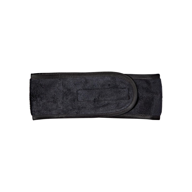 KISS COLORS & CARE Satin-Lined Spa Headband, Super Absorbent Soft Terry-Cloth, Premium Charmeuse Silky Satin, Hook & Loop Enclosure, Water Resistant, Black