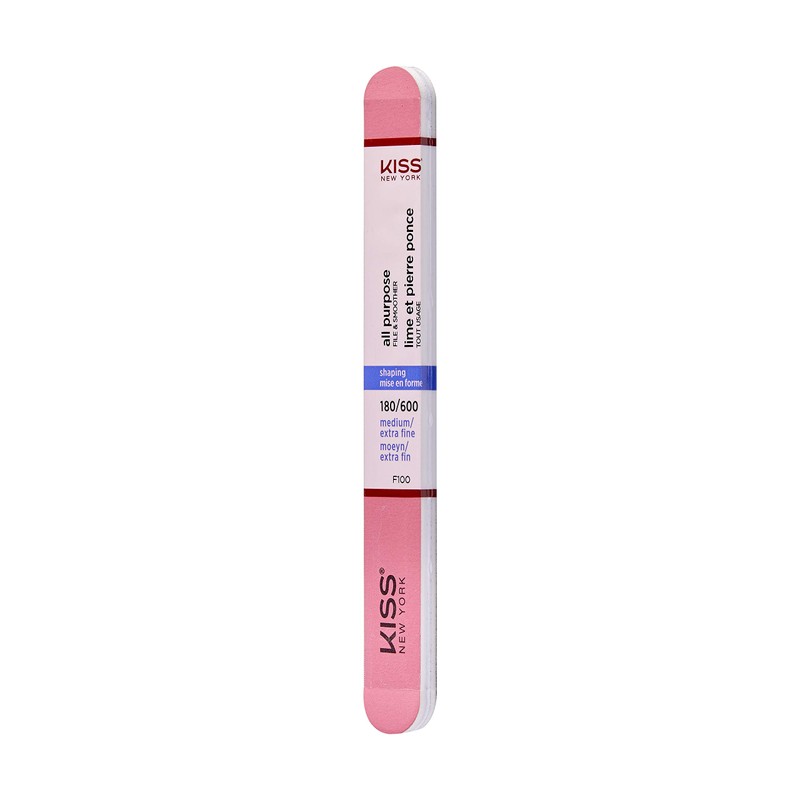 Kiss File All Purpose & Smoother 180 Medium / 600 Extra Fine F100N - Pack of 6 Files & Smooths natural and artificial nails