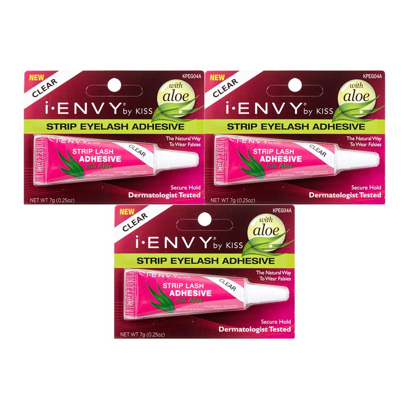 Kiss I Envy Clear 04 Eyelash Adhesive Strip With Alo 0.25 Ounce (7ml) (3 Pack)