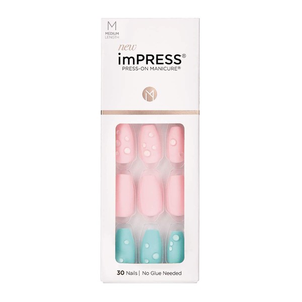 KISS imPRESS Press-On Manicure, Dew Drop, Dew Drop, Medium Length, Square, with PureFit Technology, Includes Cleaning Pad, Mini File, Manicure Sticks and 30 False Nails