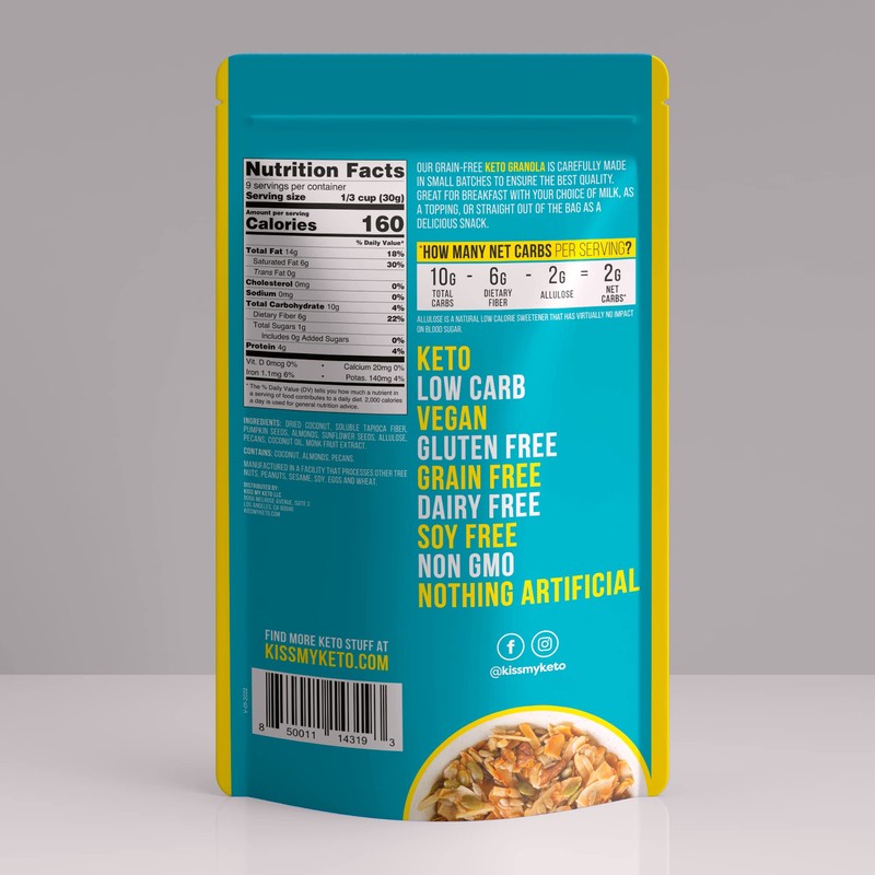 Comes in a variety of flavors, including kiss my keto granola coconut almond pecan, kiss my keto granola coconut, almond & pecan, miss keto granola coconut, keto cereal chocolate granola, kiss me keto gluten free chocolate granola, chocolate keto cereal, sugar free chocolate chip granola, chocolate almond granola, and peanut butter granola, and vanilla granola. Never leave your honey granola bulk cravings unsatisfied! This no sugar granola will be your favorite way to enjoy grainless granola. Keto cereal low carb is the best low karb keto granola way to satisfy all your cravings!