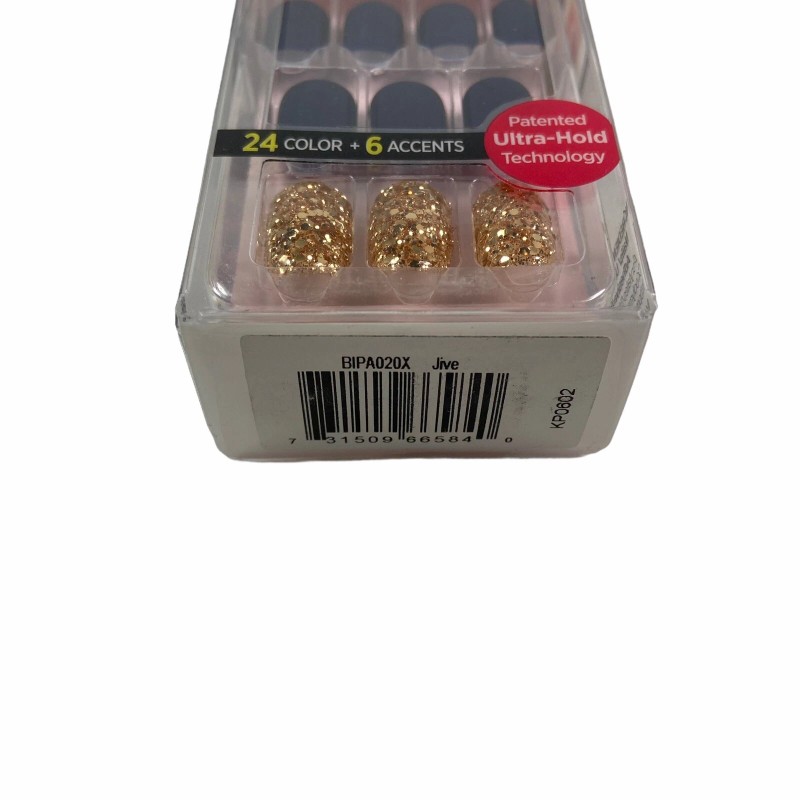NEW Kiss Nails Impress Press On Manicure Short Gel Matte Navy Blue Gold Glitter Sparkle "Jive"