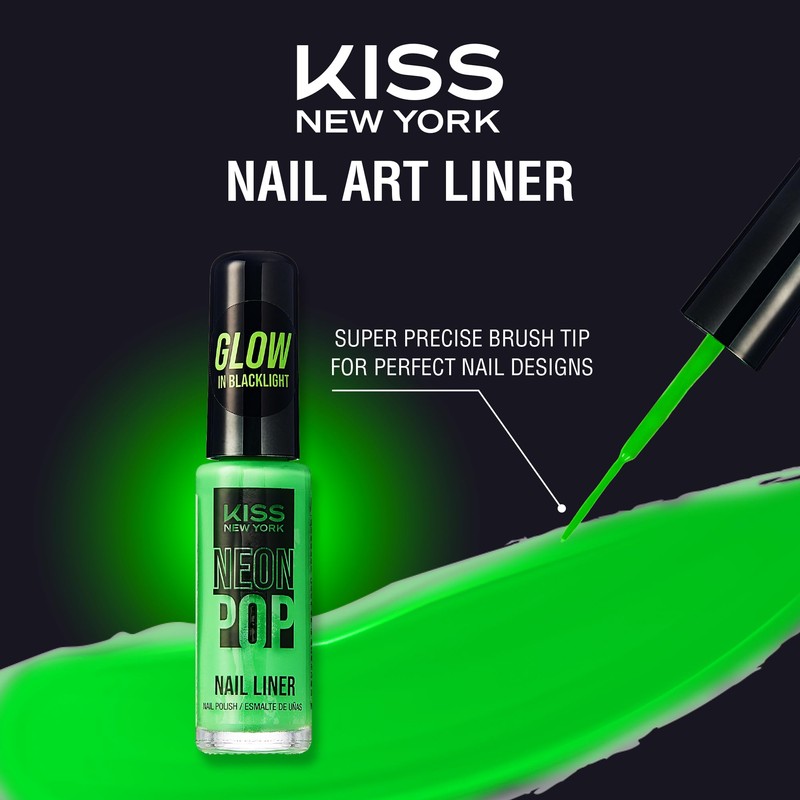 KISS NEW YORK Nail Art Liner, Fast-Drying, Slow Drip, Low Odor, Fine Bristles for Precise Lines, Salon Results at Home for Professional Nail Art (Neon Green, .22oz)