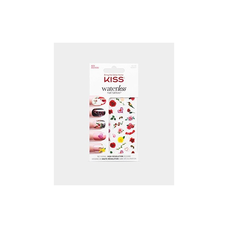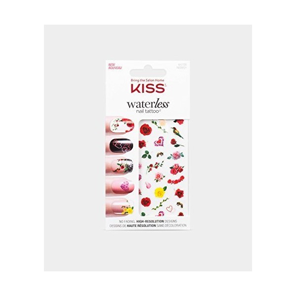 KISS Waterless Floral Nail Tattoos, 16 Pieces, Black Vinyl, Rectangular, Indoor Use, Single Use