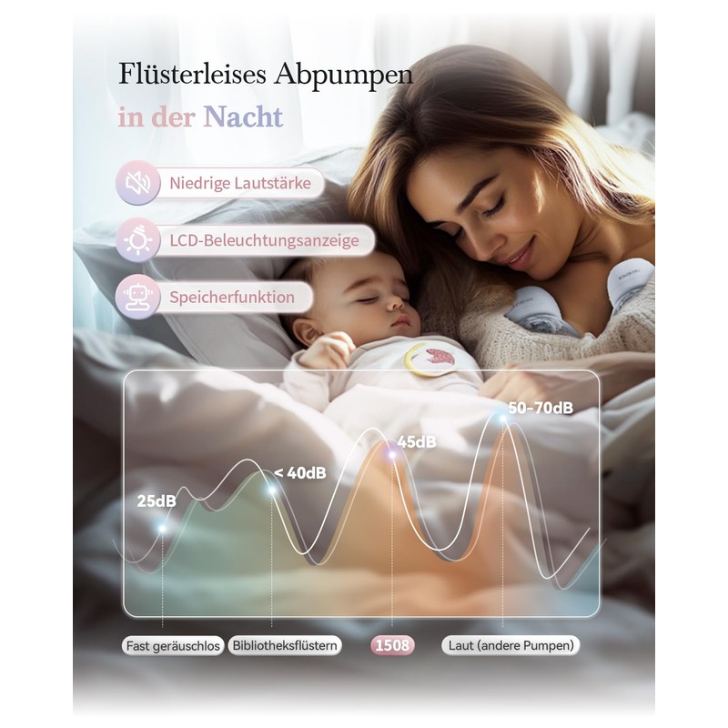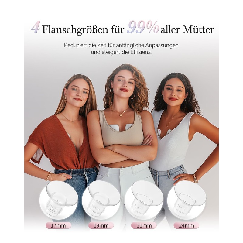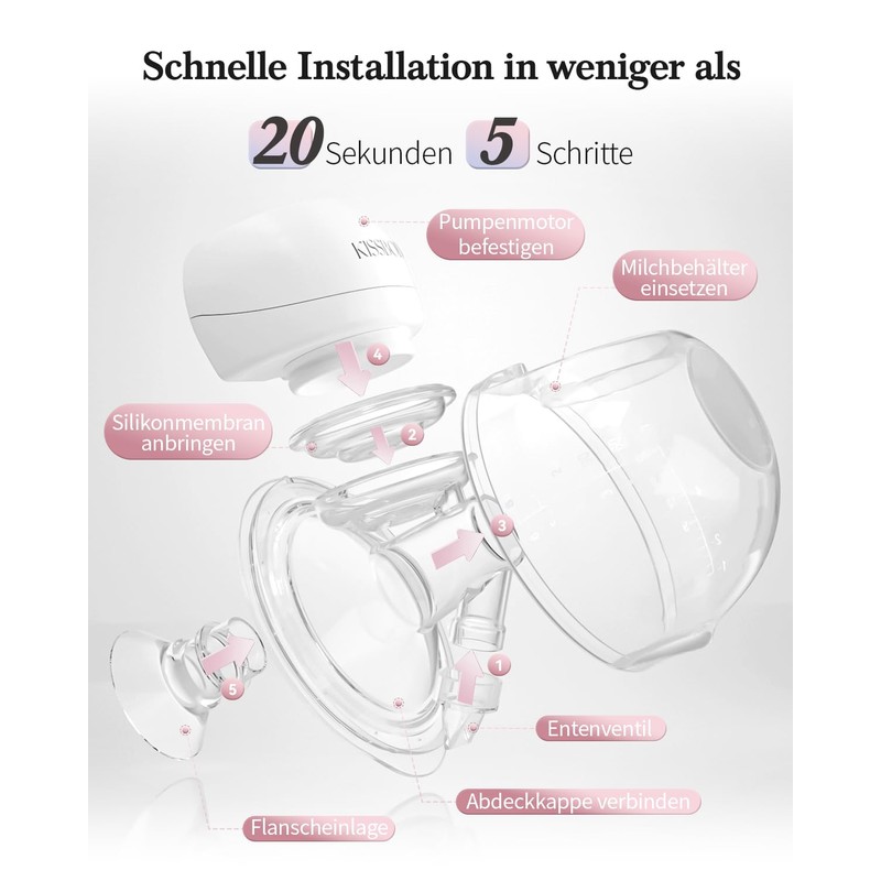 KISSBOBO Revolutionary Electric Breast Pump, 193G, Electric Breast Pump, Portable with 3 Modes, 9 Levels, Optimal Comfort with Flange 21 mm/24 mm (Pink, Pack of 2)