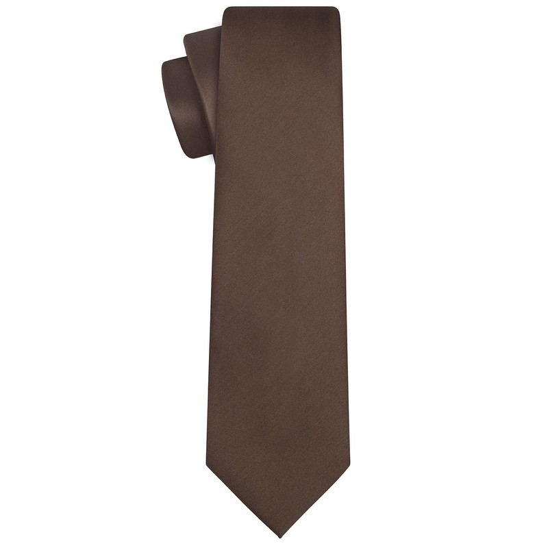 KissTies Mens Silk Truffle Brown Tie Walnut Solid Satin Wedding Necktie + Gift Box