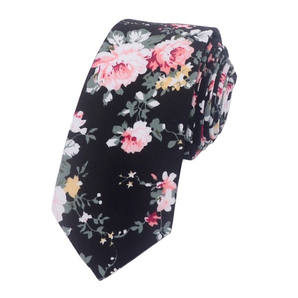 This men's cotton skinny tie with floral print design is classic and stylish.
