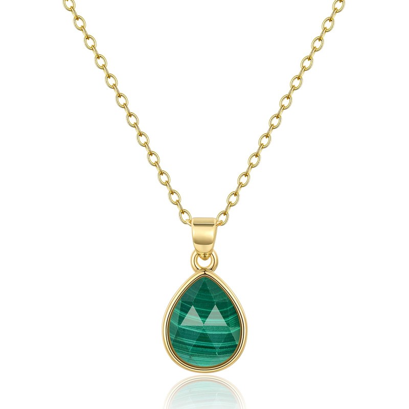 KissYan Gemstone Necklace for Women, 14K Gold Plated Crystal Teardrop Pendant Choker Natural Healing Stone Jewelry Gift, Stainless Steel, Malachite