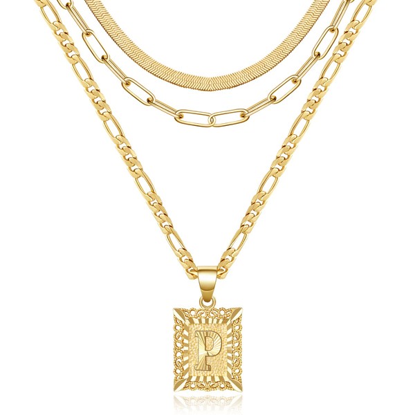 KissYan Gold Layered Necklace Set for Womens, 14K Gold Plated Initial Letter Pendant Necklaces Paperclip Snake Choker Alphabets from A-Z Figaro Chain Jewelry Gift, Stainless Steel, No Gemstone