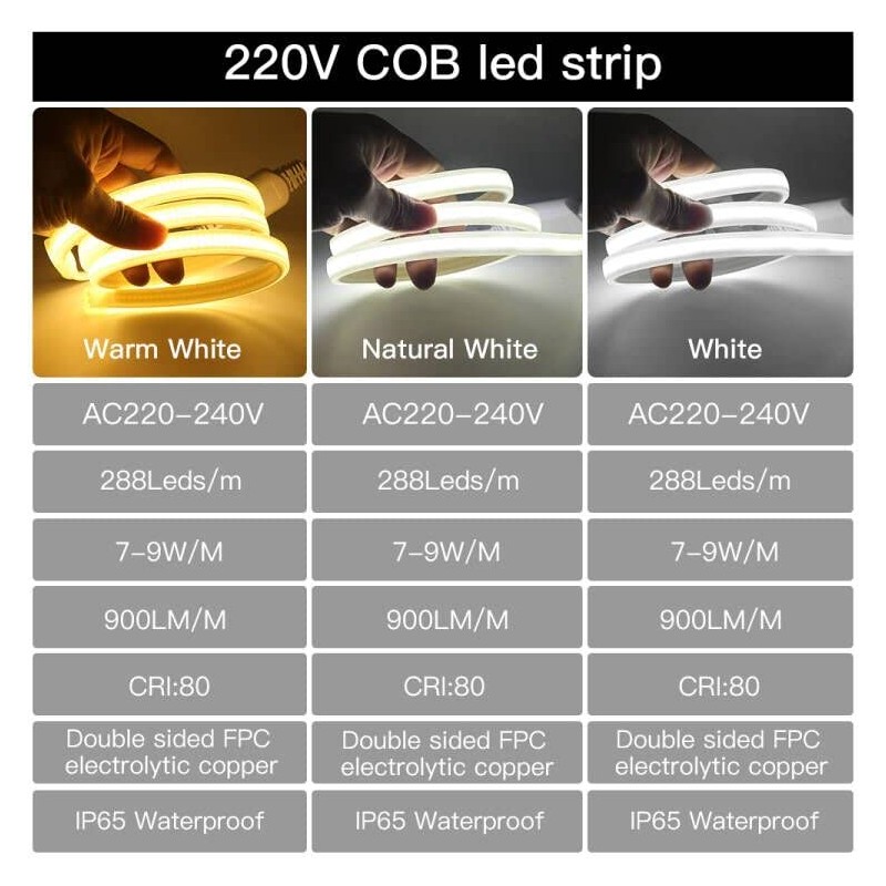 - Buy with confidence: the package includes 2 m COB LED strip light with 220 V EU switch plug. The COB LED strip light has a FCC, CE and RoHS certification. The satisfaction of our customers is very important to us - if you have any problems or comments, we look forward to your message.