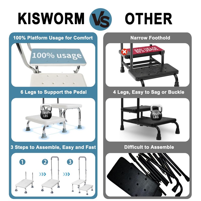 - Durability: High bed step stool made of durable, easy to clean, waterproof materials. Iron frame treated with anti-rust coating for long-lasting use