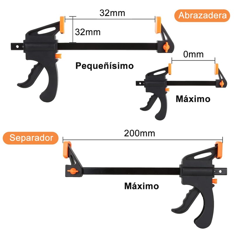- 【Abrazadera F para carpintería】La abrazadera para carpintería es fácil de usar. Es fácil de sostener y se puede operar con una mano. Hay un gatillo de liberación rápida en la parte superior, ajuste el botón de liberación rápida y tire de la varilla de empuje para sujetar o liberar. El diseño del clip de goma suave antideslizante puede sujetar su proyecto firmemente, y las almohadillas de goma suave garantizan que su proyecto no se dañe y brindan una excelente estabilidad y protección.