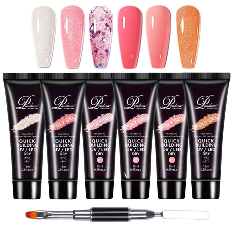 ▸7 Polygel de distintos colores (Colores tal cual la imagen, 6 nude 1 Glitter)
