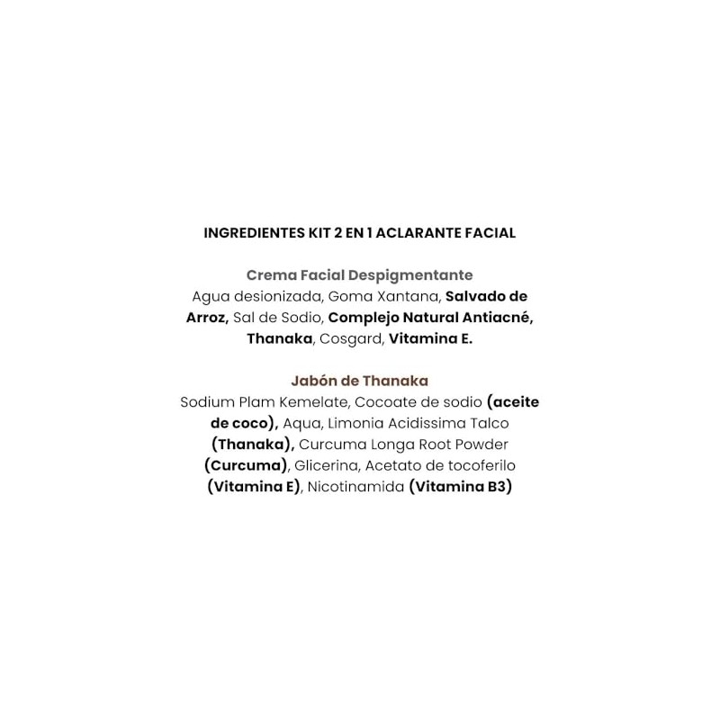 Kit 2 en 1 Aclarante Facial. Reduce el exceso de brillo. Thanaka Vitamina E. Elimina Manchas, Pao y Arrugas Faciales.