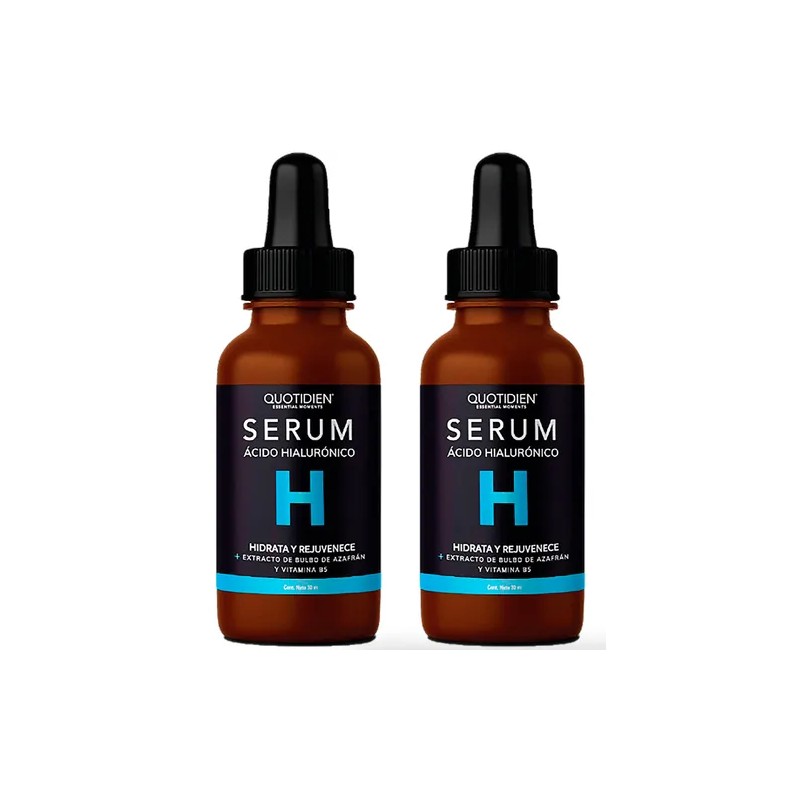 Quotidien Serum es un suero facial de Ácido Hialurónico Reticulado al 1.5% + Vitamina B5 y extracto de Bulbo de Azafrán que ayuda a hidratar, rejuvenecer y reafirmar tu piel. Contiene nutrientes esenciales para estimular la comunicación y regeneración celular mejorando visiblemente la matrix de la piel, para un rostro más terso, fuerte y joven.