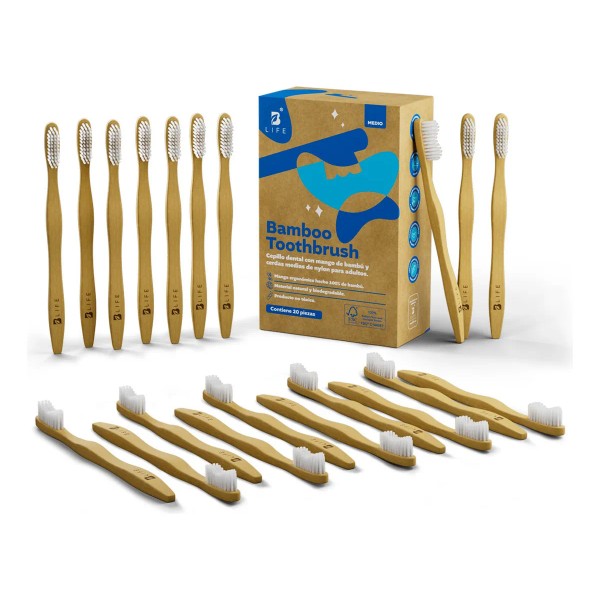 Kit 20 Cepillos Dentales De Bambú Con Cerdas Medias. B Life