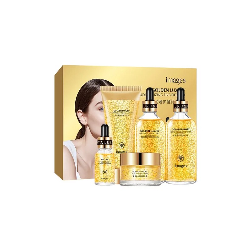 Transforma tu rutina de cuidado facial con el Kit 24k Pure Gold. Este set de lujo incluye cinco productos esenciales enriquecidos con colágeno, oro y ácido hialurónico, diseñados para ofrecer hidratación intensa, firmeza y rejuvenecimiento.