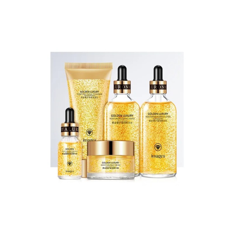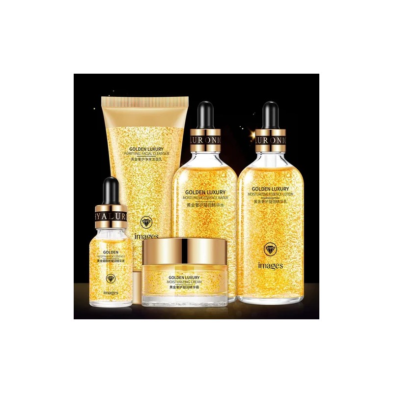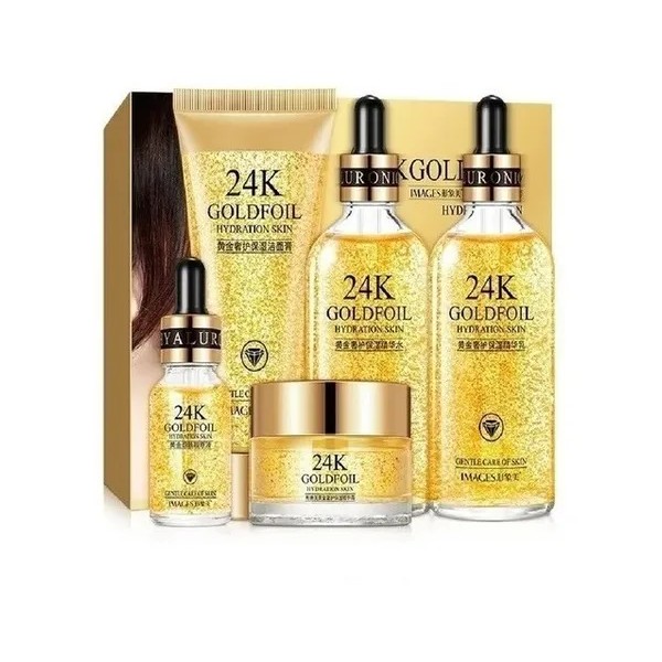 Kit 24k Pure Gold 5 Piezas – Colágeno, Oro y Ácido Hialurónico | Serum Antiarrugas
