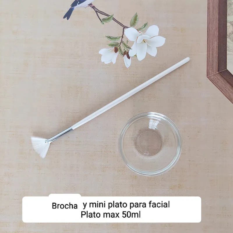 Kit 3 Pzs Brochas Y Platos Vidrio Premium Para Facial Spa